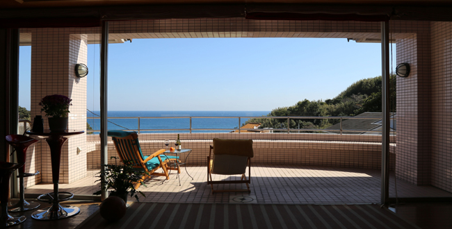 2階のバルコニーから一面に太平洋が見渡せるシチュエーションです。バルコニーに出れば静かな波音と鳥のさえずりが聞こえます。
