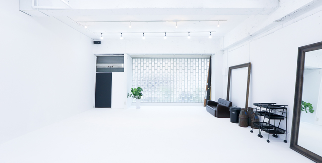 約20坪、全面白塗り、天井は3.5m、広々としたスペースで撮影を行なって頂けます。