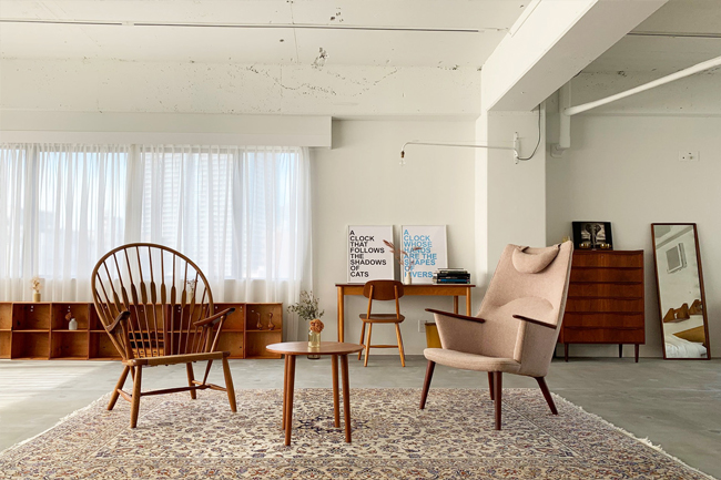 天高は290cmで、広さは110?です。スタジオの西側はほぼ全面窓で遠くに東京タワーの先が少し見えます。建物の下には首都高速と海岸通りが広がり、いかにも湾岸エリアという景色が広がります。家具は北欧のアンティークものやデザイナーズのものが置いてあります。洋雑誌や小物のプロップなどもございますので、物撮りなども撮影しやすいかと思います。