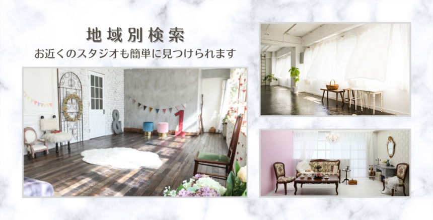全国の撮影スタジオが地域別に検索できます。