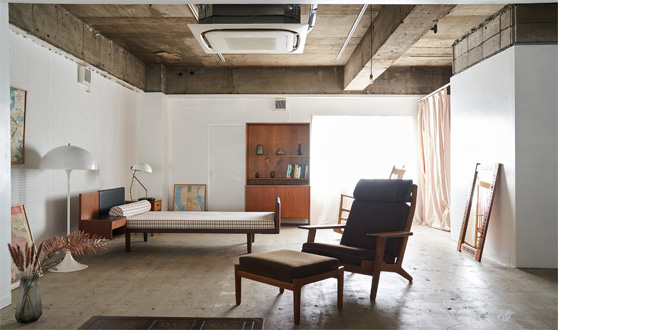 ハンス・ウェグナーのオリジナルソファやシェルフを中心にヴィンテージの北欧家具で構成されたスタジオです。kohlerのホーローシンクを設置したキッチン(水道は使用できません)も完備しています。隅田川沿いのに建つ古いビルの3階に位置し、屋上での撮影も追加費用なくご利用いただけます。冷蔵庫と洗濯機、乾燥機はドイツのmieleのものですが、冷蔵庫は使用可です。ガスコンロはダミーですので、実際は使用できませんのでご了承ください。 94?。