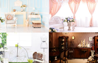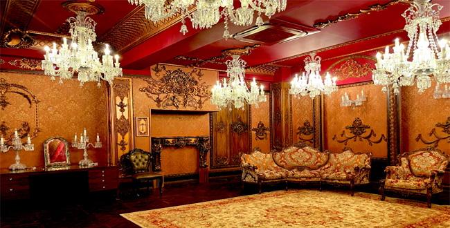 豪華シャンデリアを多数設置し、年代物の本物のアンティーク家具を実際に使用してデザインされた撮影スタジオ。