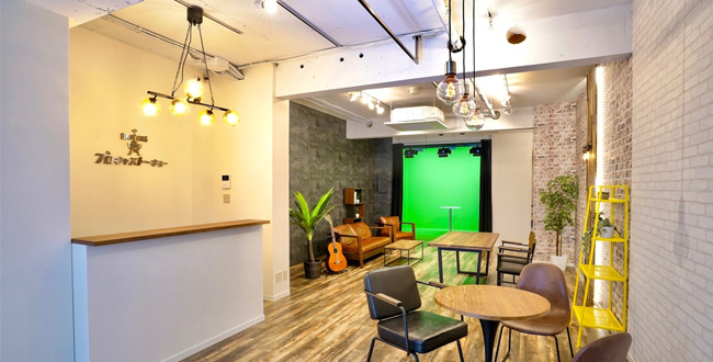 照明付き常設グリーンバックのエリアもあり、リアルタイム合成も容易に可能です。