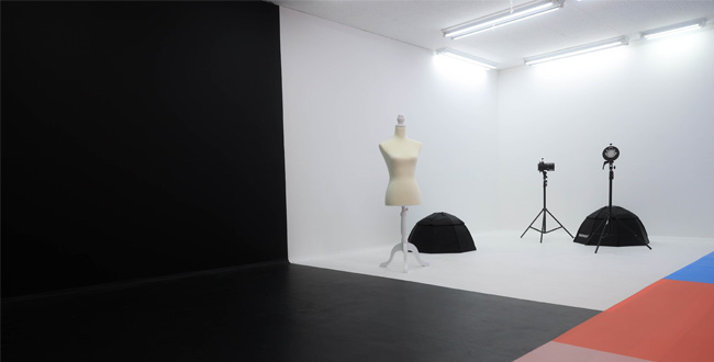◆白ホリ、黒ホリ、カラフルなカラーパネルのスタジオ