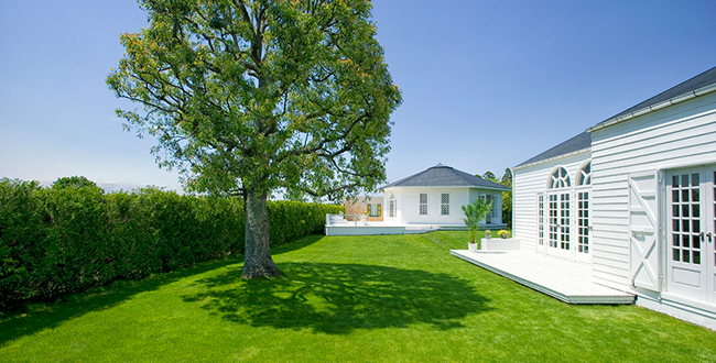 一年中緑の天然芝生と木々に囲まれたの広大な庭に二棟のスタジオ。電動でスタジオ自体が回転するので陽射しの方向や背景を自由にコントロールできるので様々な撮影情景の演出が可能です。