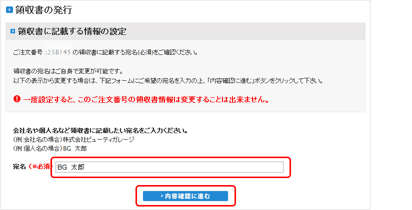 ※領収書の宛名は、一度登録すると変更ができませんのでご注意ください。