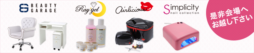 BEAUTYGARAGEブランドのネイルテーブルや、ネイルチェアなども展示販売致します。皆様のご来場、心よりお待ち申し上げております。