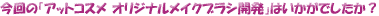 今年の3月からスタートして、早くも足かけ約半年。すでに、初回お申し込みのみなさんの元には、商品が届き始め、今回の「@cosmeオリジナルメイクブラシ開発企画」も、終ろうとしています。