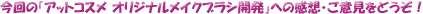 これまでに、アンケートなどでご意見くださったみなさんの数、総勢約1万人。そして、実際にご購入くださったみなさんは、1335名にもなります。この経験を生かして、@cosmeがもっと成長していくために、「メイクブラシ企画へのご意見・ご感想」や「今後のオリジナル企画へのアイデア・ご要望」などをお聞きして、最後の締めくくりにしますね。