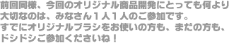 すでに大勢のみなさんにご愛用いただいている、第1弾レギュラーブラシに負けず劣らずの可愛い妹分を、みんなで作っちゃいましょう♪