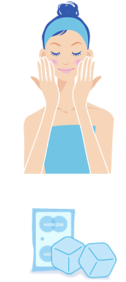 ささっと短時間でお手入れをすませている人は、美容液のつけかたを見直して。毛穴の凹凸の奥までしっかり浸透していなければ、せっかくの効果も半減。毛穴が目立つ部分は、一度顔全体に美容液などをつけた後で、再度、薬指に美容液をとり、くるくると重ねづけ。さらにもう1回同じように繰り返すと毛穴の奥まで浸透します! お風呂あがりの肌、あるいは洗顔後に化粧水をたっぷりつけてなじんだ後の肌は水分でふやけています。この状態で、左手の親指とひとさし指で皮膚を固定し、右手のひとさし指の腹を小鼻やあごに当てて、皮膚を軽く撫でさすると厚くつもった角質がポロポロ取れてきます。スクラブ剤を使う場合も、お風呂あがりあるいは洗顔後に化粧水をつけた後にすると、汚れオフもスムーズに。 毛穴が目立つ時期には毎朝、毛穴が開いている部分を冷やすことを習慣に。洗顔して水気があるときにアイスキューブをガーゼに包んで肌に軽く当てて冷やし、洗顔後、化粧水や美容液をつけた後にさらに保冷剤で肌をひんやり冷やすと効果的です。 |