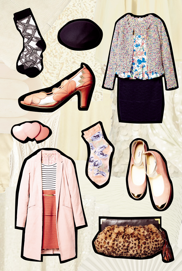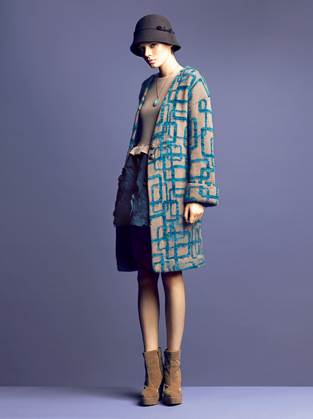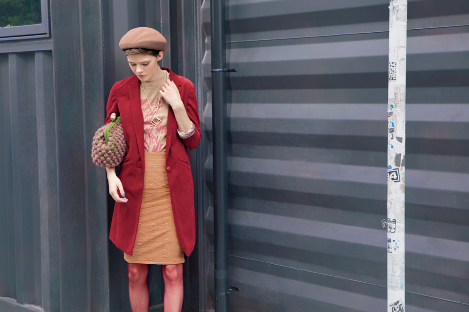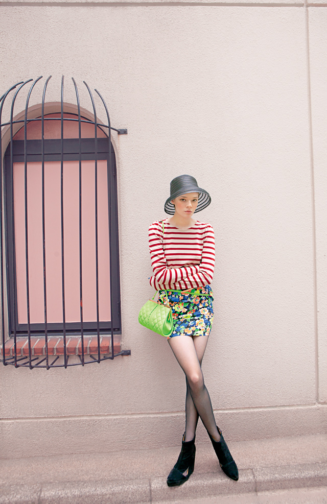 - Coat 14,910yen, Tank top 3,990yen, Skirt 6,930yen, Beret 5,880yen, Necklace 2,940yen, Bag 7,770yen, Tights 1,260yen