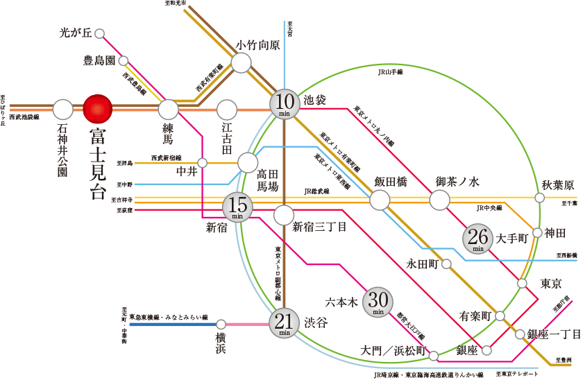 ※掲載の所要時間は日中平常時のもので、乗り換え・待ち時間は含みません。また時間帯により多少異なります。
