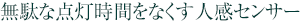 玄関には人を感知すると自動点灯し、時間が経つと消灯する人感センサーライトを設置。必要な時だけ点灯するので電気代の節約効果もあり、経済的なシステムです。