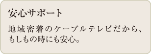 日本最大のケーブルテレビ局統括運営会社であるJ:COMを導入しているため、地上デジタル放送を安定した映像でお楽しみいただけます。また、CSデジタル放送※2にて国内外の映画やドラマ・アニメやスポーツなど、さまざまなジャンルのコンテンツが視聴いただけます。