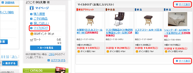 マイカタログ(お気に入りリスト)は、お気に入りの商品やよくご注文いただく商品を登録して、自分だけのカタログを作ることができる機能です。