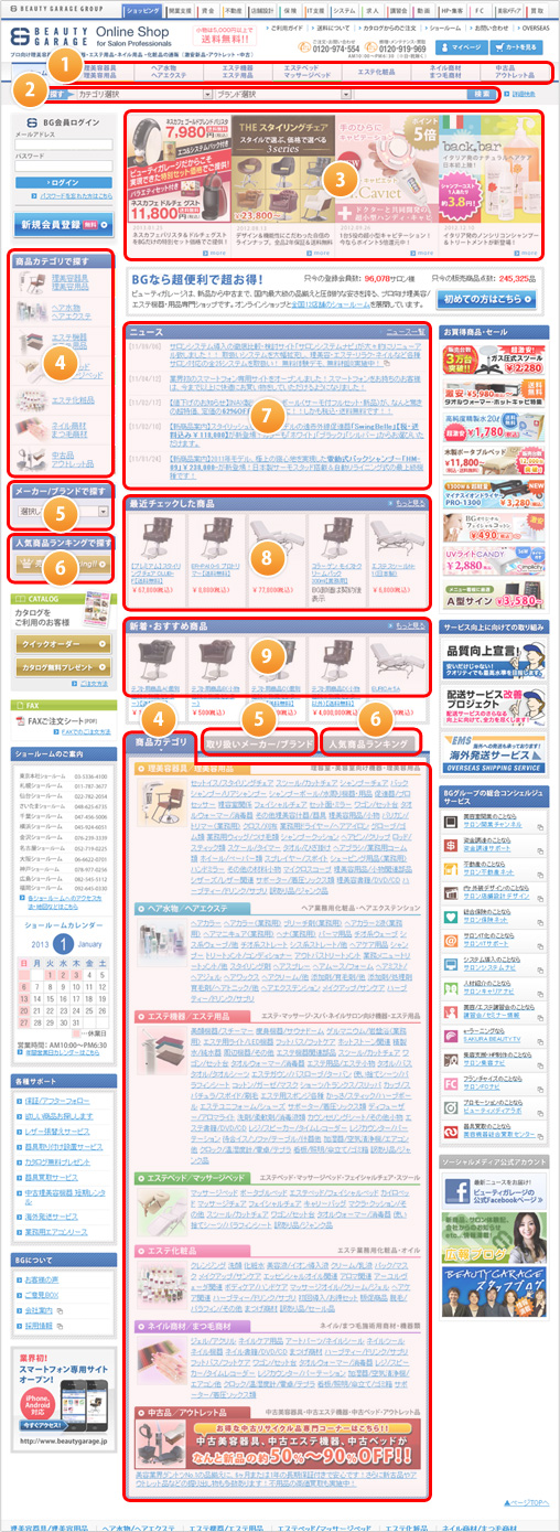 ビューティガレージオンラインショップでは、商品をさがすための様々な方法をご用意しております。